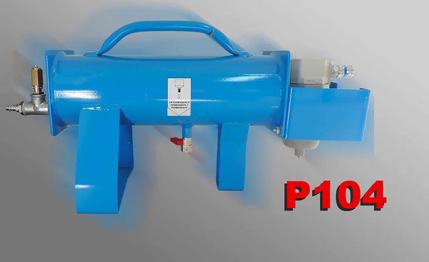 1- L'aria compressa passa attraverso il deumidificatore P104. La particolare conformazione dell'unità permette di eliminare la quasi totalità dell'acqua